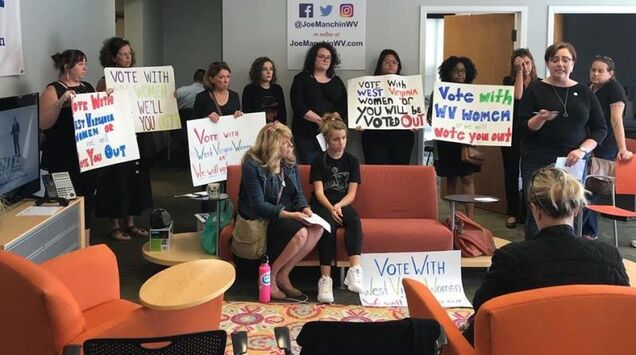 A group of women are occupying the campaign office of West Virginia Democrat Joe Manchin, demanding the senator vote against Supreme Court nominee Brett Kavanaugh.